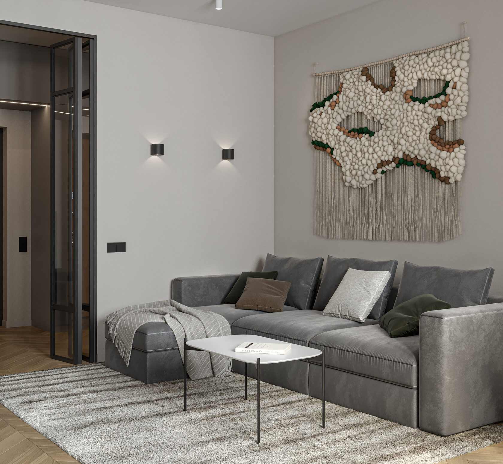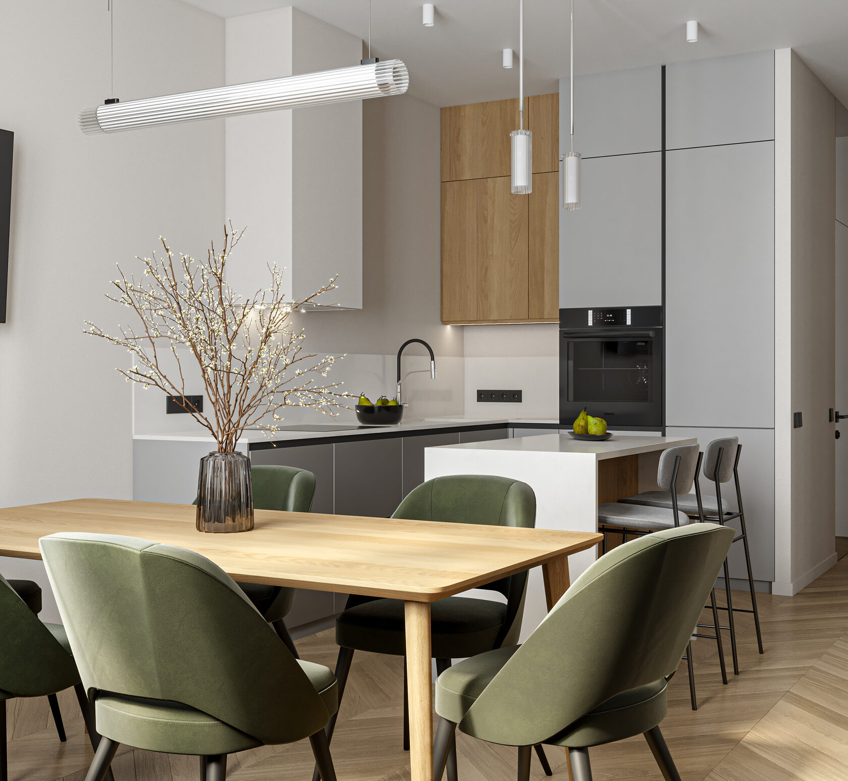 Интерьер в стиле неоклассика. В нем мы применили лаконичные архитектурные решения и дополнили их изысканными деталями, чтобы создать по-настоящему сдержанное и при этом наполненное и уютное пространство.