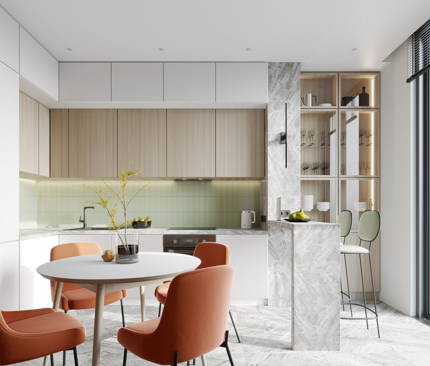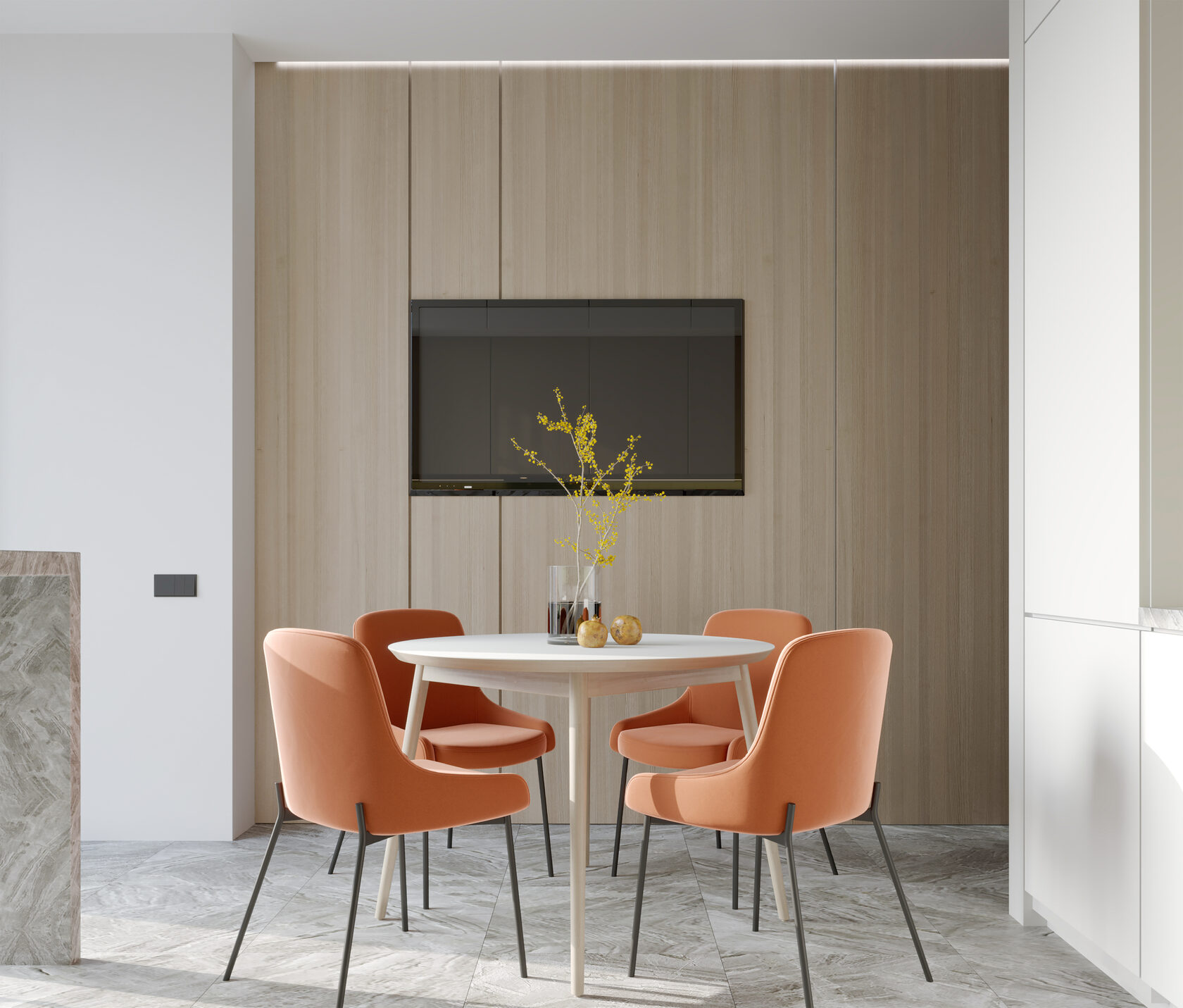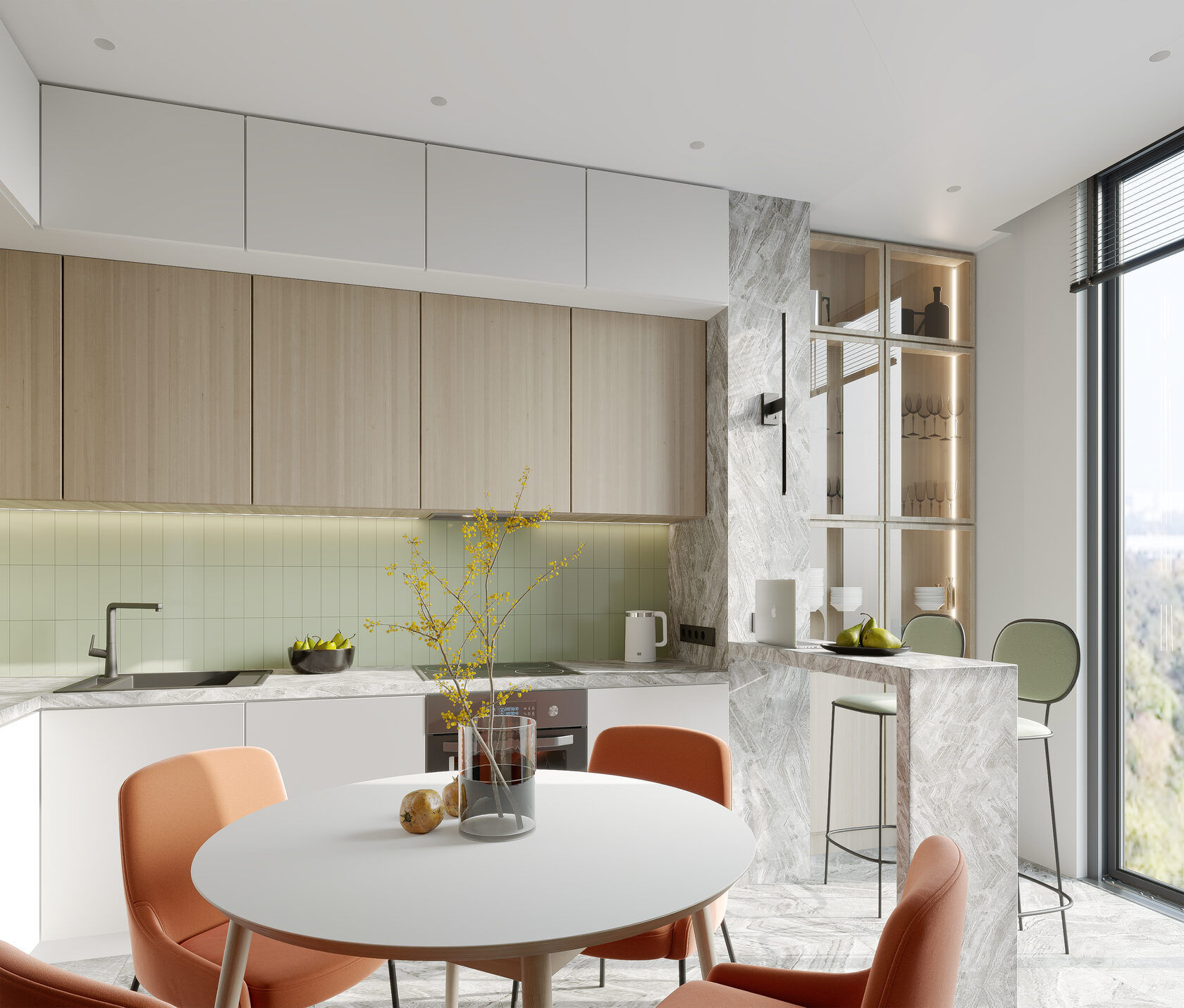 Квартира в жилом комплексе Летний сад. Изначальная площадь квартиры составляла 38,9м², но было принято решение присоединить балкон к кухне, тем самым мы увеличили общую площадь почти на 3 квадратных метра, и хоть это не много, но пространство визуально стало гораздо больше и интересней. За счет такого решения получилось сделать на кухне не только обеденный стол, но и барную стойку, за которой удобно работать с ноутбуком.